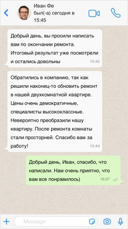 Осуществляем поставку строительных материалов, создадим дизайн-проект по желанию клиента. На цену ремонта влияет размер помещения, срок работы и выбор строительных материалов. Выполним ремонт в любой комнате: в гостиной, кухне, туалете, спальне, в независимости, от того живете вы в хрущёвке или новом доме.
